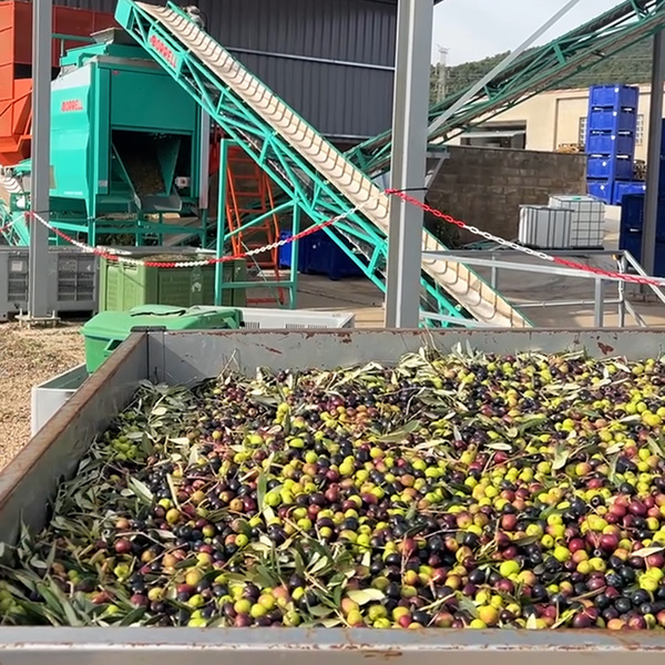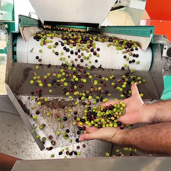 • De olijven worden niet gewassen. Dat hoeft niet, omdat ze zonder bestrijdingsmiddelen worden geteeld en ze niet op de grond vallen tijdens het oogsten.