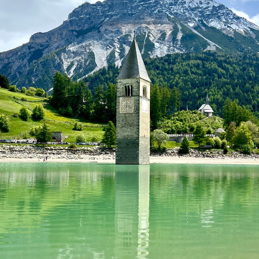 Zaterdag, de laatste volle dag, was vrij in te vullen. Eric en ik reden in 15 minuten naar Italië en bezochten het Reschenmeer, met die iconische kerktoren die uit het water steekt – magisch! Daarna genoten we op een terras in het ommuurde dorpje Glurns van een ijscoupe. ’s Avonds sloten we af met een gezellige kaasfondue in het hotel, met brood en groenten. Een perfecte afsluiting van een bijzondere week.