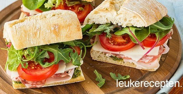 Met deze broodjes belegd met Italiaanse vleeswaren, tomaat en pesto waan je je met de lunch in Italië. Lekker om koud te eten of mee te nemen maar ook even kort verwarmen onder de grill is lekker