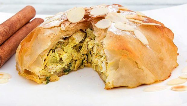Hartig maar toch zoet Marokkaans taartje met lekker gekruide kip in een krokant jasje van filodeeg