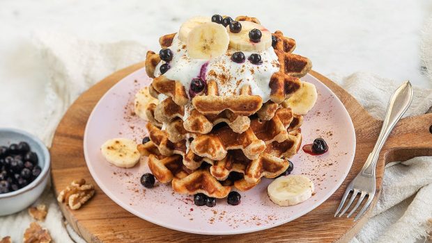 Deze gezonde wafels zijn voor mij een perfectie combinatie van iets lekkers en iets voedzaams. Door een paar paar slimme keuzes in ingrediƫnten zijn deze wafels gezond en nog steeds erg lekker. Deze luchtige wafels zijn gemaakt met o.a. havermout, banaan en Griekse yoghurt. Ik serveer ze vaak met wat extra yoghurt en fruit als lekkere toppings. Ook ideaal om te eten voor of na het sporten.