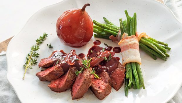 Dit recept voor hertenbiefstuk met rode portsaus en stoofperen is perfect voor een wat luxer diner. Ik maak het zelf regelmatig voor een kerstdiner en dan maakt het altijd indruk. Maar het kan ook zeker op andere gelegenheden, zoals een avondje thuis of een etentje met familie of vrienden. Het fijne aan dit gerecht is dat het helemaal niet moeilijk is om te maken en je kunt het al binnen 35 minuten serveren!