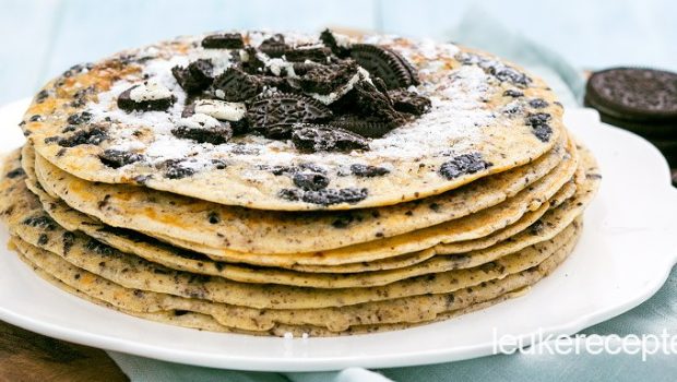 Deze heerlijke pannenkoeken met stukjes Oreo koekjes moet je een keer proberen!
