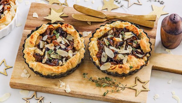 Op zoek naar een leuk en smakelijk hapje voor de feestdagen? Deze hartige, gekarameliseerde uientaartjes zijn perfect als voorgerecht of bijgerecht. Makkelijk om te maken, helemaal vegan en echt onwijs lekker!