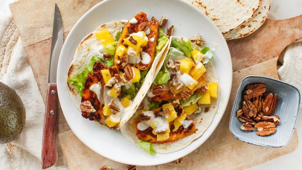 Deze heerlijke halloumi wraps zijn perfect voor een snelle, smaakvolle maaltijd. Een lekkere combinatie van gegrilde halloumi, avocado, mango en knapperige pecannoten. Ideaal als lunch of lichte avondmaaltijd.