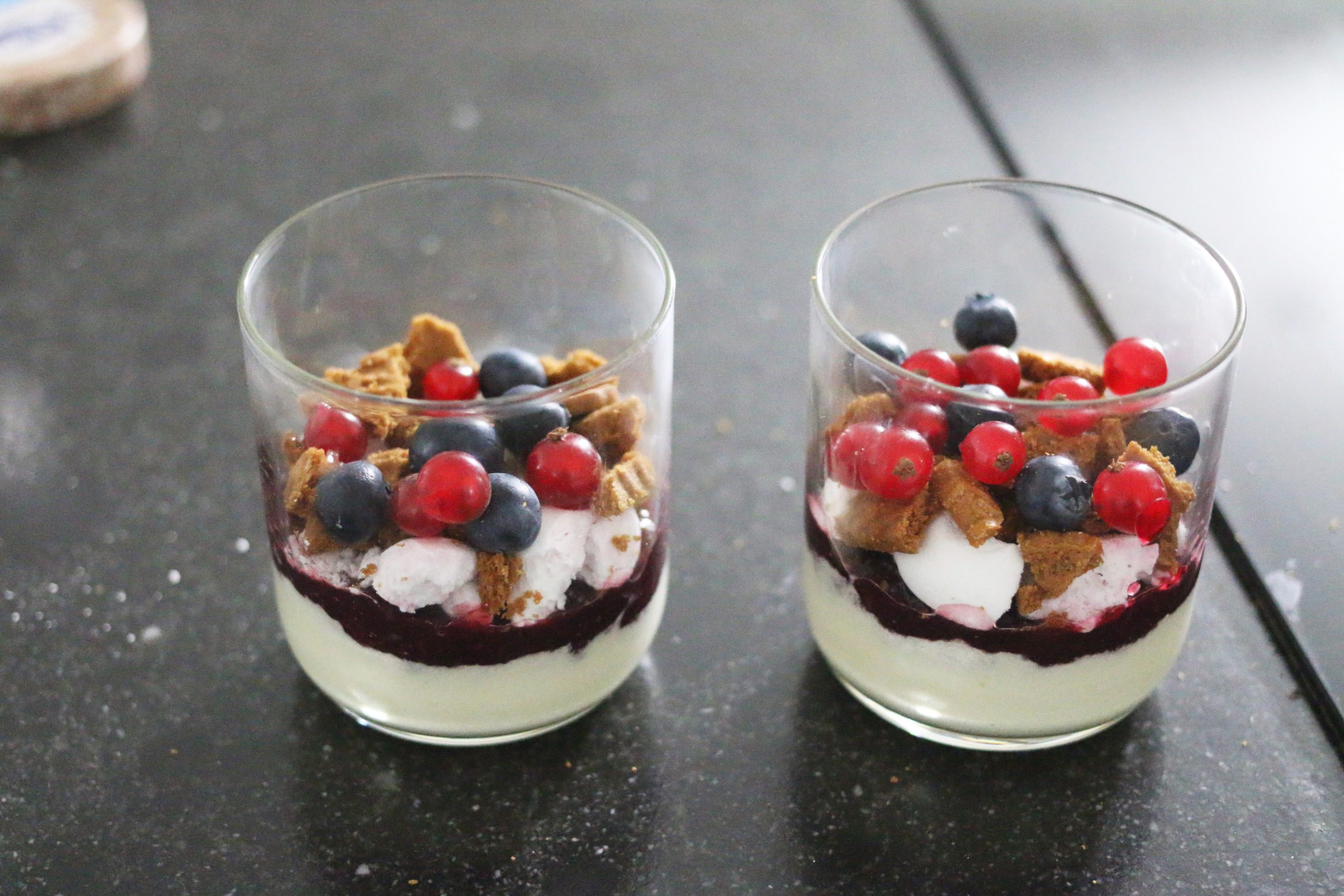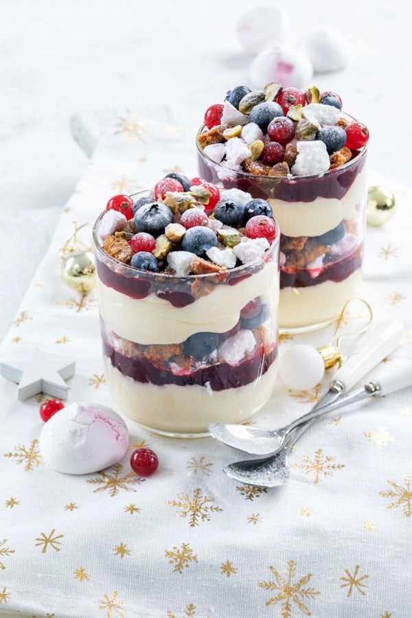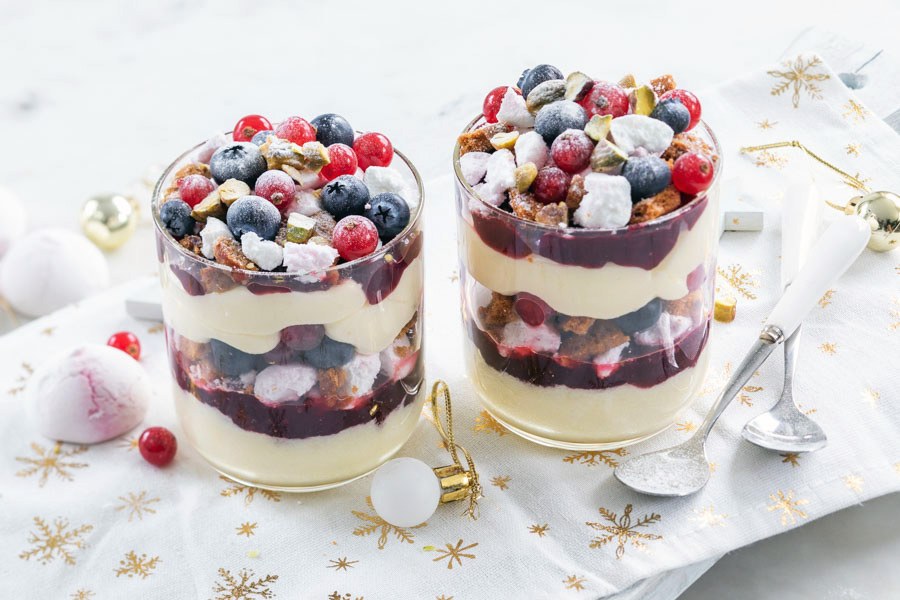 Kerst trifle met witte chocolademousse en bosvruchten