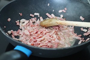 3. Tip: voor een gezondere en minder vette versie vervang je de spekreepjes door reepjes gerookte kip