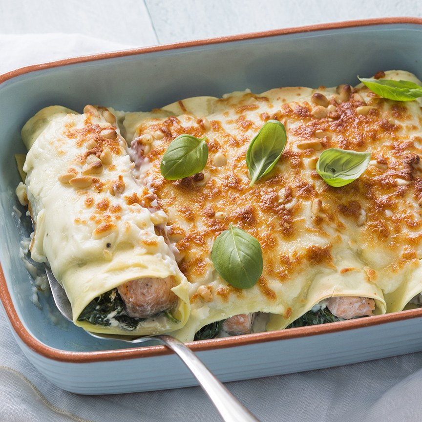 Cannelloni met spinazie en zalm