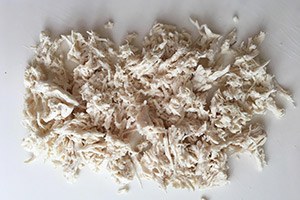 1. Verwarm de oven voor op 200 graden. Maak de zoete aardappels schoon en droog af. Besprenkel met wat olijfolie en prik met een vork gaatjes erin. Zet ca. 50 minuten in de oven, totdat ze zacht zijn. Breng een ruime hoeveelheid water aan de kook en kook hierin de kipfilet in 20 minuten gaar. Neem de kip daarna uit het water en trek met twee vorken uit elkaar tot er pulled chicken ontstaat.