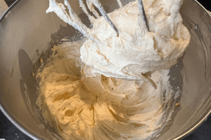 1. Zorg ervoor dat de roomboter op kamertemperatuur is. Klop de roomboter samen met de suiker los.