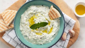 4. Tip: je kunt kant en klare tzatziki gebruiken voor een hele snelle variant op dit Griekse pitabroodje. Maar zelfgemaakt is het lekkerste. Bekijk hier het recept voor zelfgemaakte tzatziki.
