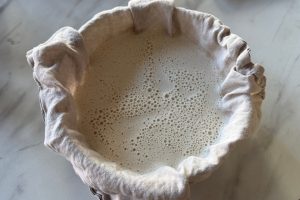• Zeef de havermelk door een kaasdoek, notenmelkzak of schone zakdoek