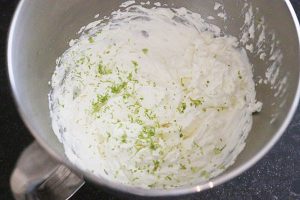 2. Klop de slagroom lobbig met de vanillesuiker. Mix op het laatst de Griekse yoghurt er door en de limoenrasp.