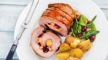 De beschrijving is niet duidelijk of de cranberry’s gekonfijte/zoete cranberry’s moeten zijn, of verse/diepvries. Ik heb de laatste gebruikt en ze een beetje gekneusd en wat van het zure sap eruit geknepen voor ze door de spinazie te mengen.