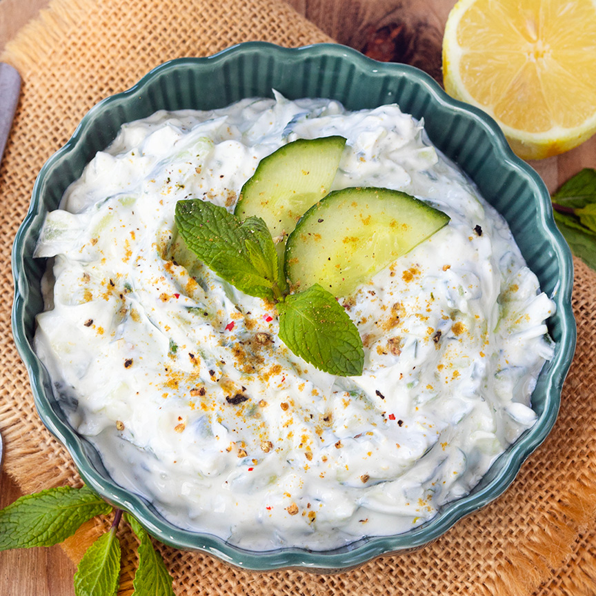 4. Proef of je nog wat extra citroen of kruiden wilt toevoegen. Zet de raita indien mogelijk een half uurtje in de koelkast zodat de smaken goed intrekken. Serveer koud.