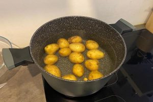 2. Breng aan de kook en kook de aardappel 10-15 minuten met een snuf zout tot ze zacht zijn.