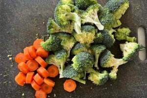 6. Als de bouillon klaar is, schep dan de ui, sjalotten, knoflook, gember en kruiden eruit. Snijd de broccoli in roosjes, de wortel in plakjes en de paddenstoelen in schijfjes. Voeg deze toe aan de bouillon en kook nog 10 minuten op een laag vuurtje. Giet ook de sojasaus en azijn erbij en breng de soep op smaak.