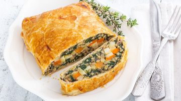 • Overgebleven stukjes bladerdeeg kun je gebruiken als versiering bovenop.