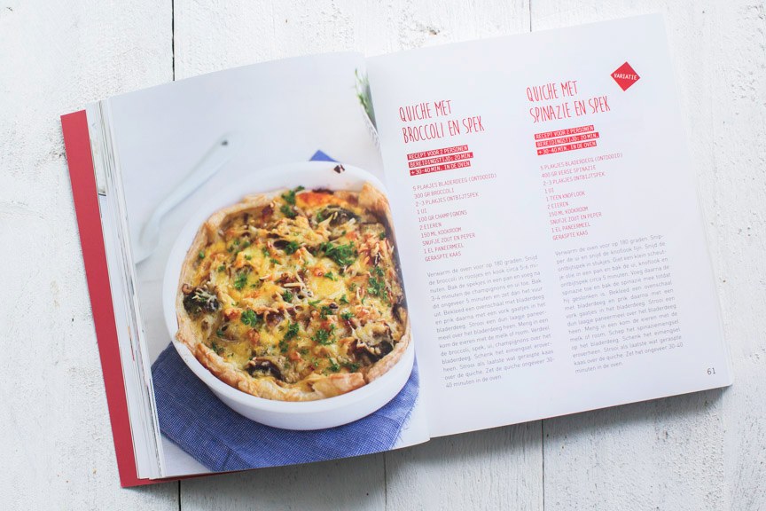 Het boek bevat in totaal 200 recepten en is 320 pagina’s dik. Door middel van de kleur zie je of het vlees, vis, gevogelte of vega is. Er staat verder geen poespas in maar gewoon op elke pagina een lekker receptje. Een aantal voorbeelden van recepten zijn: Grieks gevulde aubergine, pasta ovenschotel met pompoen, risotto met doperwten en spek maar ook hartige taarten, soepen, salades, burgers en toetjes zijn er in te vinden.