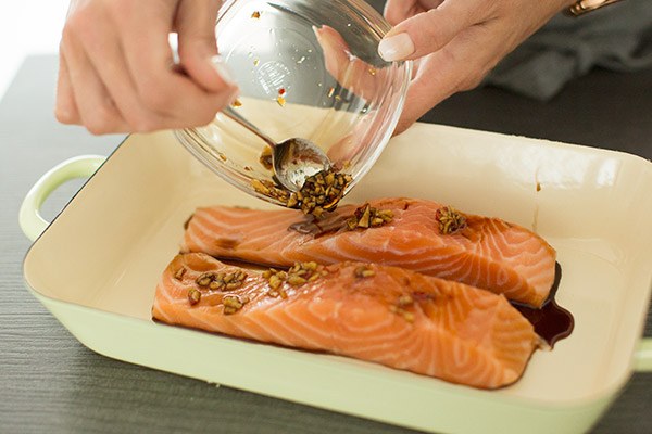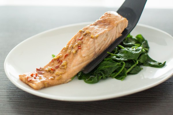 Stoomoven recept: Oosterse zalm met spinazie