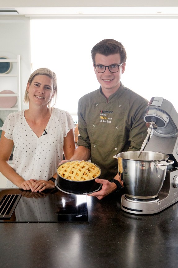 Voor het maken van de appeltaart gebruikten Hans en ik naast de ingrediënten een springvorm (23-24 cm), deegroller en de Kenwood Chef Titanium Patissier. Met deze krachtige keukenmachine meng je heel makkelijk het deeg en er zitten handige functies op zoals verlichting boven de kom en een optie om direct ingrediënten te wegen in de kom.