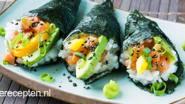Temaki is een sushi handrol in de vorm van een hoorntje, gevuld met sushirijst en andere lekkere ingrediƫnten